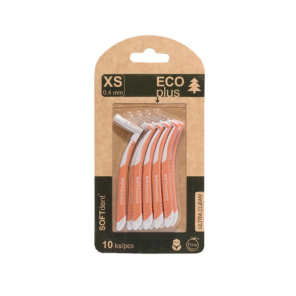 Zahnuté mezizubní kartáčky SOFTdent® jsou vyrobené z obnovitelných zdrojů, které šetří životní prostředí. Rukojeť mají z PLA plastů (Polylactic acid), jejichž základní surovinou je biomasa a přírodní materiály. Jsou určeny pro aktivní čištění mezizubních prostor, pomáhají jako prevence před vznikem zubního kazu a paradontózy. Díky své konstrukci do tvaru L účinně čistí a odstraňují zbytky jídla a plak i z těžko dostupných míst mezizubních prostor. Součástí balení je praktický kryt vyrobený ze škrobu.